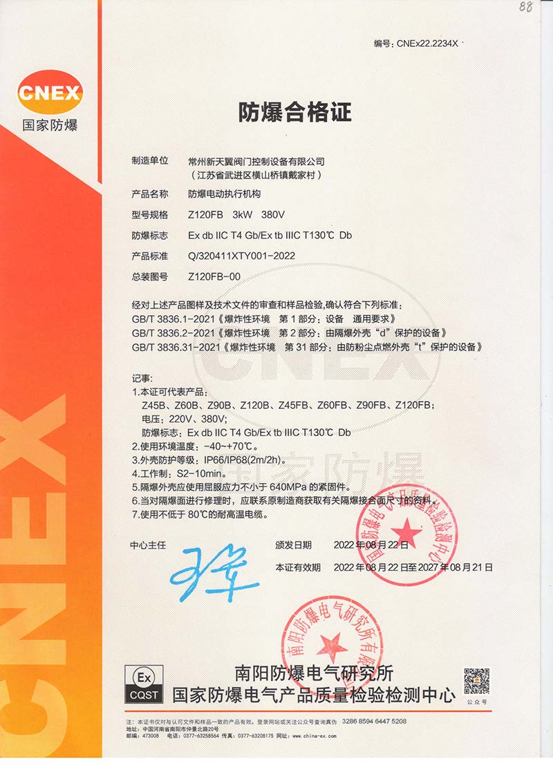 防爆Z10B Z10FB國家強制性產品認證CT4證書109.1